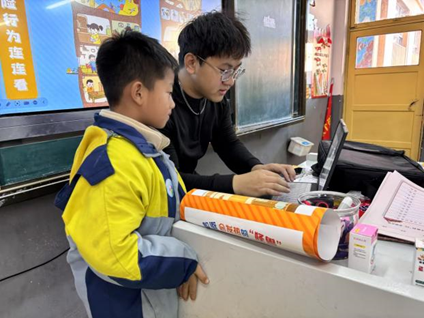 随后,团队总结社区实践经验,走进小学围绕爱国教育、管道安全、意外防护和预防侵害四个主题展开精心设计的课程,通过PPT、动画、管道模型和模拟道具等形式丰富多样地讲解,并增设了“AI换脸防诈骗”环节,让学生亲身体验网络诈骗,增强了安全教育的实际感受,为活动增添了亮点。