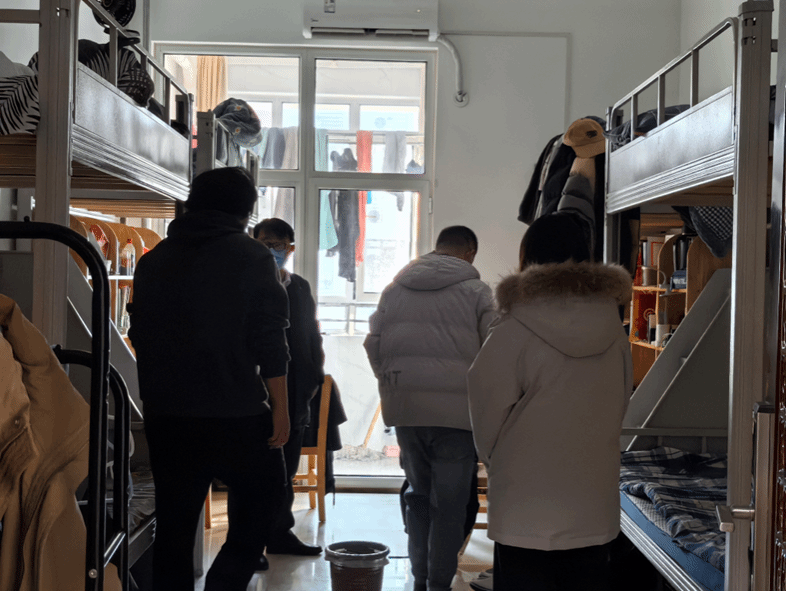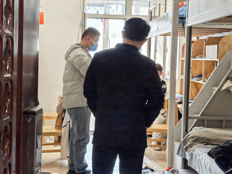 在检查过程中,李庆江书记和辅导员们认真查看了每间宿舍的卫生状况,包括床铺整洁、物品摆放、垃圾清理等方面。同时,他们还重点检查了宿舍内的用电安全,确保学生们没有使用违规电器,并提醒学生注意用电安全,避免火灾等安全隐患。鉴于冬季室内空气流通不畅,辅导员提醒学生定期开窗换气,保持室内空气新鲜,有效预防呼吸道疾病。