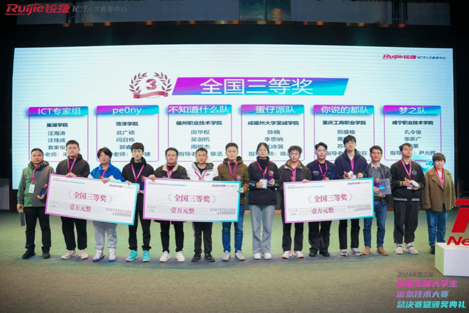 12月28日,在第三届锐捷全国大学生信息技术大赛总决赛中,由我院于继江和唐小婕老师带队指导的网络运维与管理团队pe0ny战队阎召栋、郭睿、武广硕三位同学,凭借其不懈的努力和卓越的表现,成功脱颖而出,荣获全国总决赛三等奖、喜提奖金一万元,这是我院学子首次参加此项赛事,即取得了骄人成绩,实现了跨越式突破。