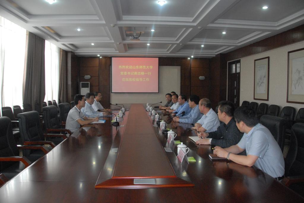5月23日,山东师范大学党委书记商志晓一行来我校访问。党委书记王焕良,党委副书记、院长姜同松,党委委员、副院长黄济民,党委委员、副院长刘兴坦会见了商志晓一行并在第一会议室座谈。