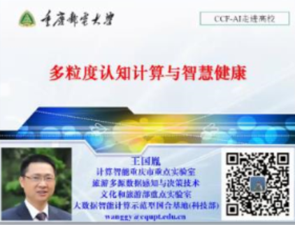 王国胤教授以“多粒度认知计算与智慧健康” 为题,分析人工智能对新一轮科技革命的影响,介绍国内外的人工智能科技发展状况。从认知科学和智能科学交叉的角度介绍多粒度认知计算这一交叉学科前沿研究方向,并从智慧健康角度,对卫生健康科学大数据的智能分析与挖掘问题进行系统讨论。