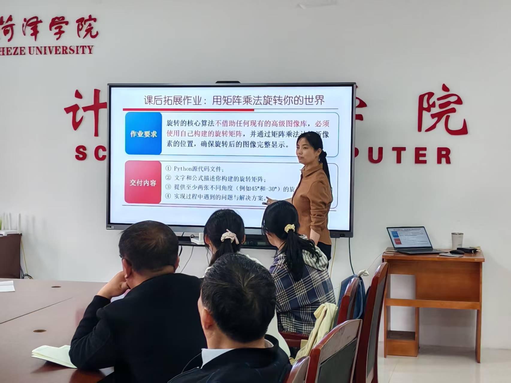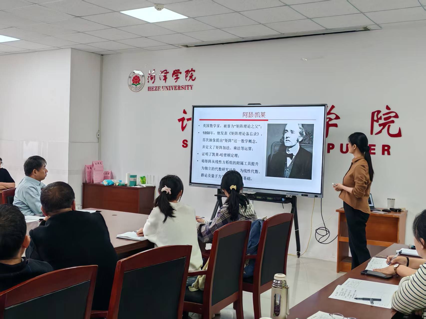 为深入贯彻立德树人根本任务,推动计算机专业教育与思政教育深度融合,提升教师课程思政建设能力,4月2日下午,伟德victor1946在综合实验楼W422会议室举办本学期第一期课程思政集体备课示范活动。本次主讲老师是邵丽丽教授,主讲内容为《线性代数》的矩阵运算。