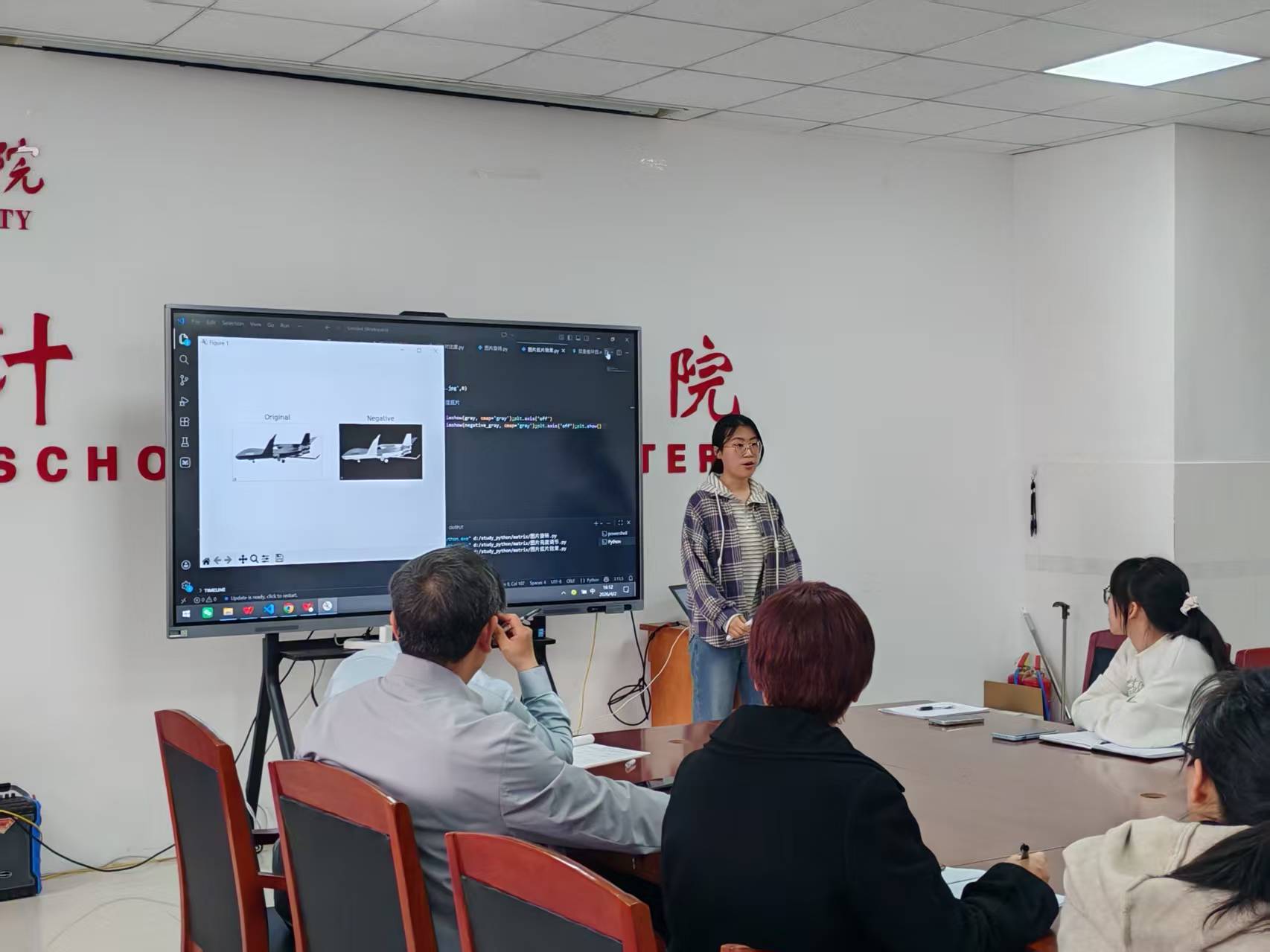 邵老师围绕矩阵运算核心知识点,创新教学设计,打破传统数理课堂局限,将抽象数学原理与人工智能、数字图像处理等前沿应用紧密结合,让抽象公式转化为看得见、可运行的工程实例。课堂的教学环节亮点纷呈、特色鲜明;思政元素与专业知识实现自然渗透、同频共振。邵老师采用“理论讲解+代码实操+互动体验”的教学模式,抽选两组学生现场运行Python代码,展示矩阵运算对图像进行处理的效果,以代码验证理论、用实践深化理解,充分体现“数学为基、技术为用”的教学理念。同时,通过AI智能交互技术,搭建与矩阵理论奠基人阿瑟·凯莱的“跨时空对话”场景,以趣味化形式解读科学原理的诞生历程,引导学生感悟严谨求实的科学精神、勇于探索的创新精神与薪火相传的学术担当。