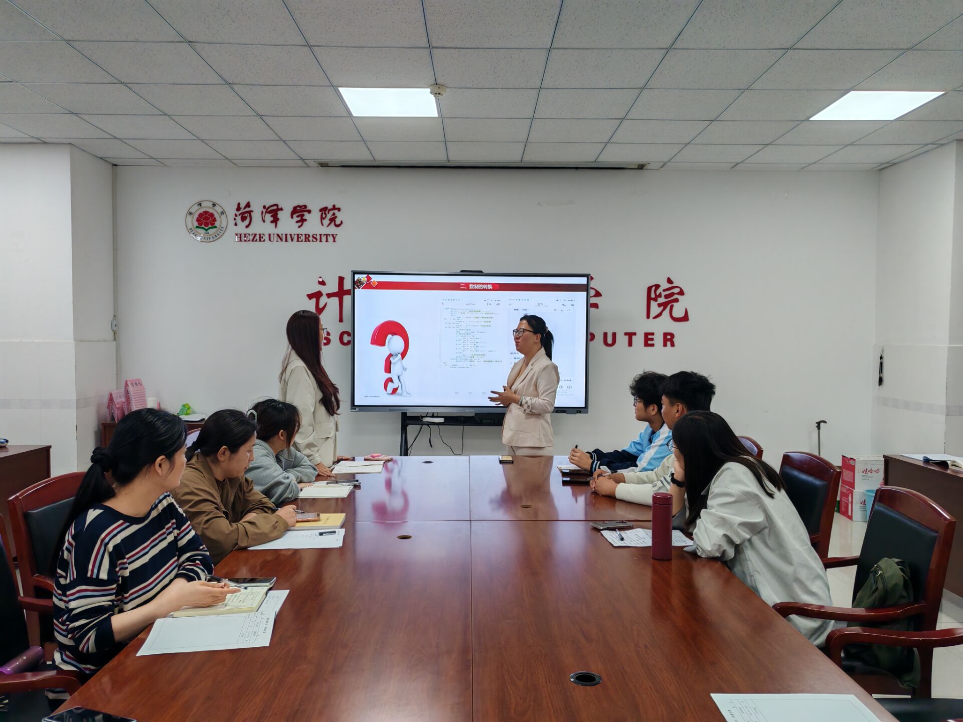 课程结束后,参与教师围绕教学设计展开热烈研讨,各抒己见、交流心得。马克思主义学院专家李曼受邀出席并给予高度评价,就“如何更自然地融入思政元素”“如何结合学生学情优化教学案例”“如何通过进制转换教学培养学生严谨的逻辑思维”等问题深入探讨,提出了诸多切实可行的优化建议。思政辅导员也提出了诸多宝贵建议,认为主讲内容兼具专业性与思想性,有效解决了教师在课程思政教学中“不知融、不会融”的难题,希望全体教师以此次备课为契机,持续深耕课程思政,不断优化教学设计,让思政元素真正融入课堂教学的每一个环节。