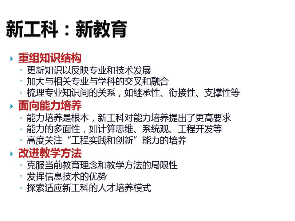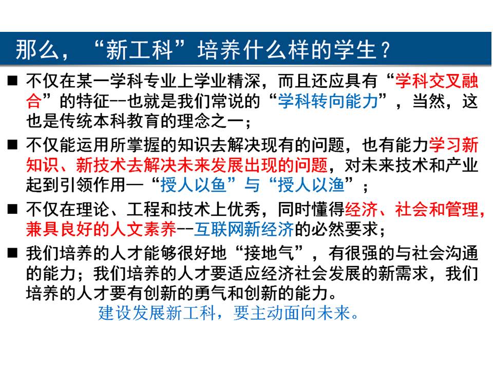 教育教学 培养方案 课程建设 协同育人 教学成果 理论学习 理论学习 网站首页 > 教育教学 > 理论学习 > 正文 新工科认识 [作者]: [编辑]:伟德victor1946教科办   上一条:什么是审核评估 下一条:学校对待审核评估的两种心态