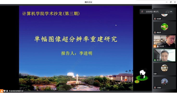 报告会采用线上方式进行,由李进明副教授主讲,伟德victor1946全体教师听取报告并参与讨论,报告会由副院长黄玉文副教授主持。李进明副教授首先阐述了单幅图像超分辨率重建技术的研究背景、学术和现实意义;然后介绍了课题组在图像超分领域提出的几项代表性重建模型;最后给大家分享了在科研文献阅读方面的个人经验。会议最后,李进明副教授回答了教师提问的问题,黄玉文副教授对此次学术报告会做了总结,他指出此次报告会不仅让广大师生对目前国际科研的热点方向有所了解,对加强教师之间的学术交流与合作、在更好的指导学生的科学研究方面起了良好的促进作用。