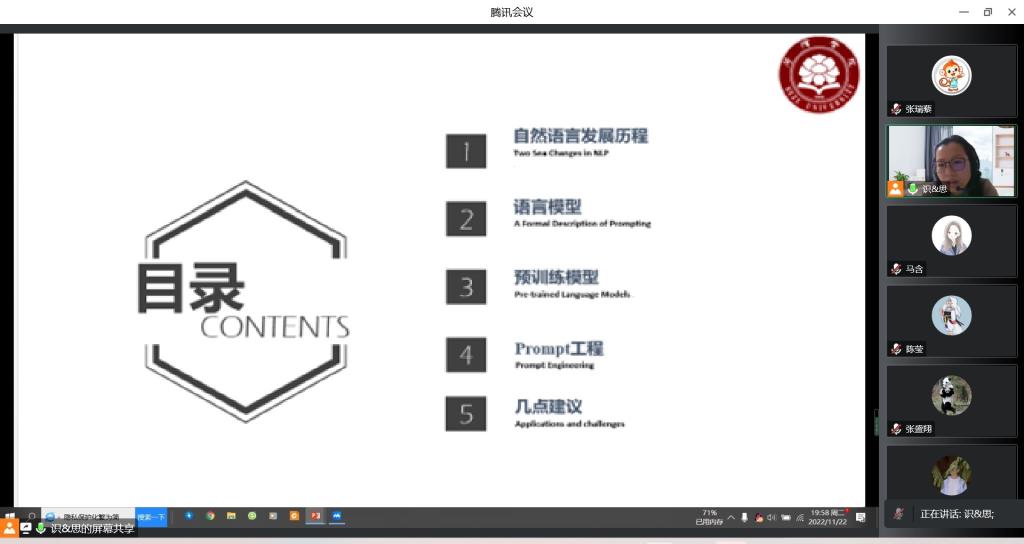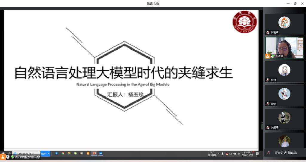 伟德victor1946以实际行动贯彻落实党的二十大精神,11月22日晚19点30分伟德victor1946组织开展了学术沙龙第六期主题为“自然语言大模型时代的夹缝求生”的学术报告会。