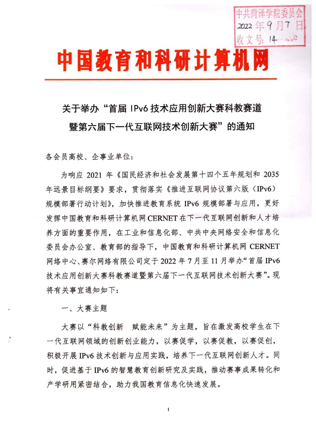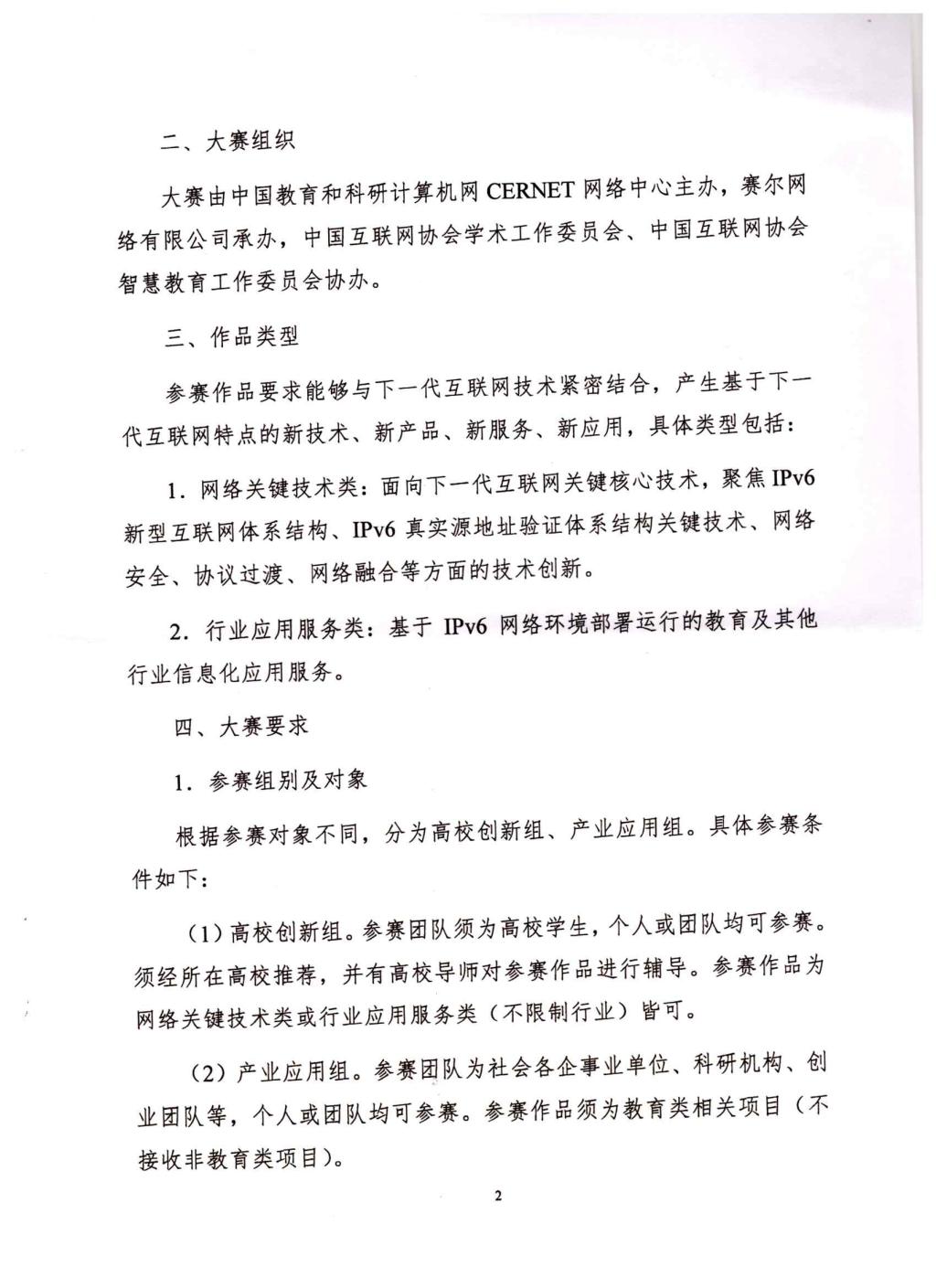 学生工作 学生活动 公示信息 创新创业 学科竞赛 创新创业 网站首页 > 学生工作 > 创新创业 > 正文 关于举办“首届IPv6技术应用创新大赛科教赛道暨第六届下一代互联网技术创新大赛”的通知 [作者]: [编辑]:伟德victor1946学工办   上一条:举办bevictor伟德国际1946首届广告创意大赛 暨第16届全国大学生广告艺术大赛校内选拔赛 下一条:2022年山东省高新视频创新大赛 校级初赛通知