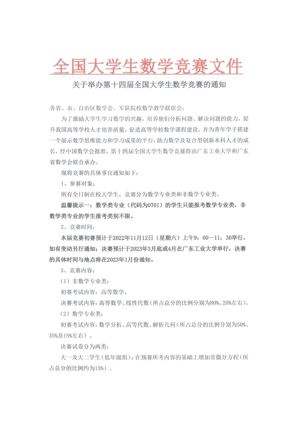学生工作 学生活动 公示信息 创新创业 学科竞赛 学科竞赛 网站首页 > 学生工作 > 学科竞赛 > 正文 全国大学生数学竞赛文件 --关于举办第十四届全国大学生数学竞赛的通知 [作者]: [编辑]:伟德victor1946学工办   上一条:同心喜迎二十大 同向礼赞新征程 ——bevictor伟德国际1946书画摄影大赛通知