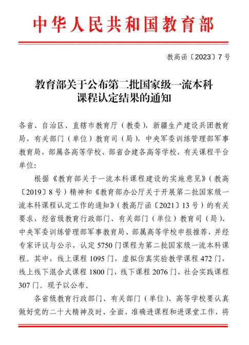 近日,教育部公布第二批国家级一流本科课程认定结果,我校《C语言程序设计》被认定为国家级线上线下混合式一流本科课程。这是我校首门国家级课程,实现了零的突破!