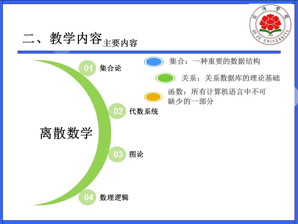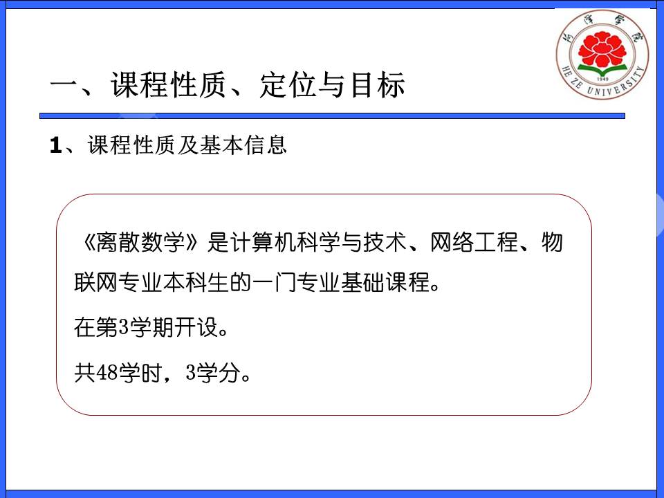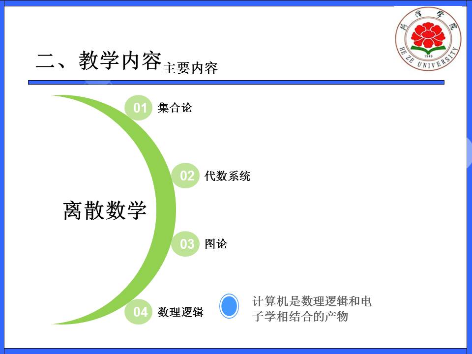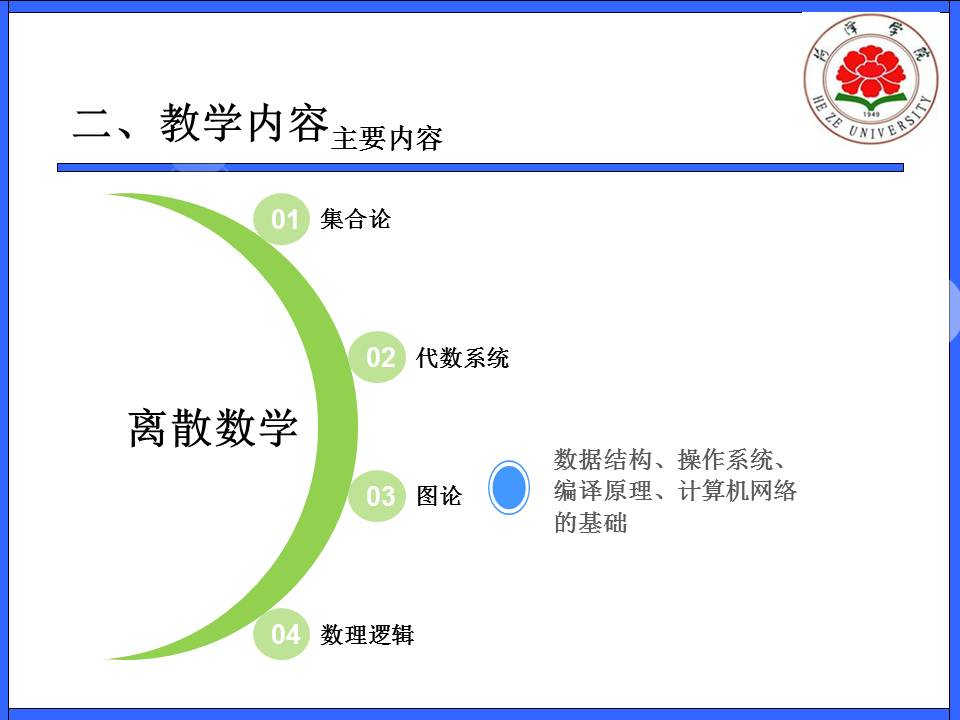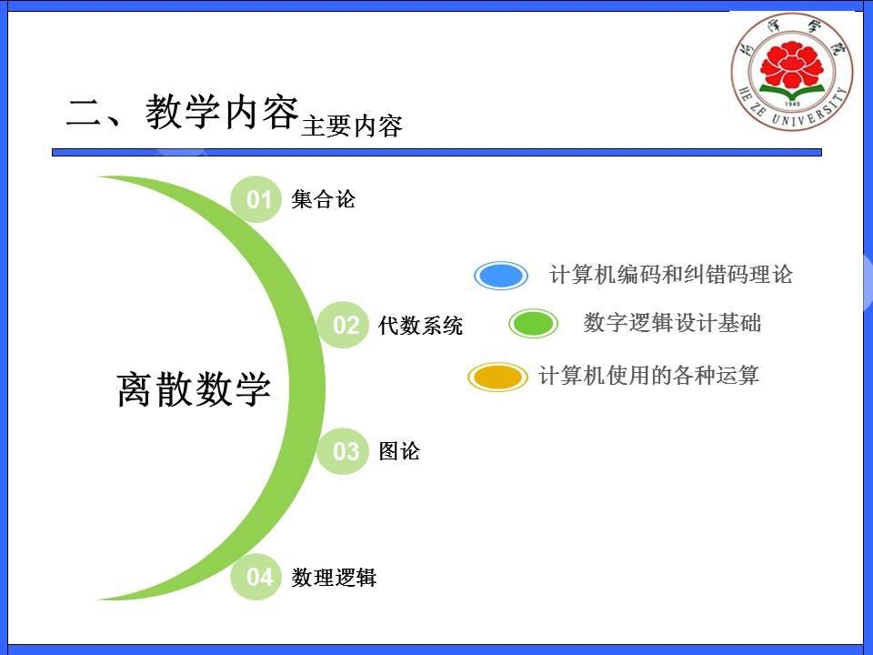 教育教学 培养方案 课程建设 协同育人 教学成果 理论学习 课程简介 网站首页 > 教育教学 > 课程建设 > 课程简介 > 正文 离散数学 [作者]: [编辑]:李静(计算机系)   下一条:框架编程技术