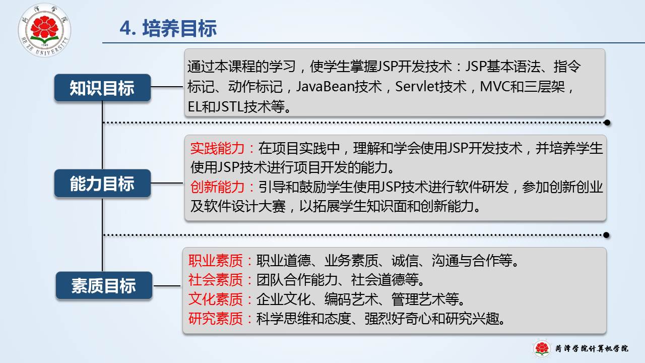教育教学 培养方案 课程建设 协同育人 教学成果 理论学习 课程简介 网站首页 > 教育教学 > 课程建设 > 课程简介 > 正文 Web应用开发 [作者]: [编辑]:李静(计算机系)   上一条:创新创业基础 下一条:Web编程基础