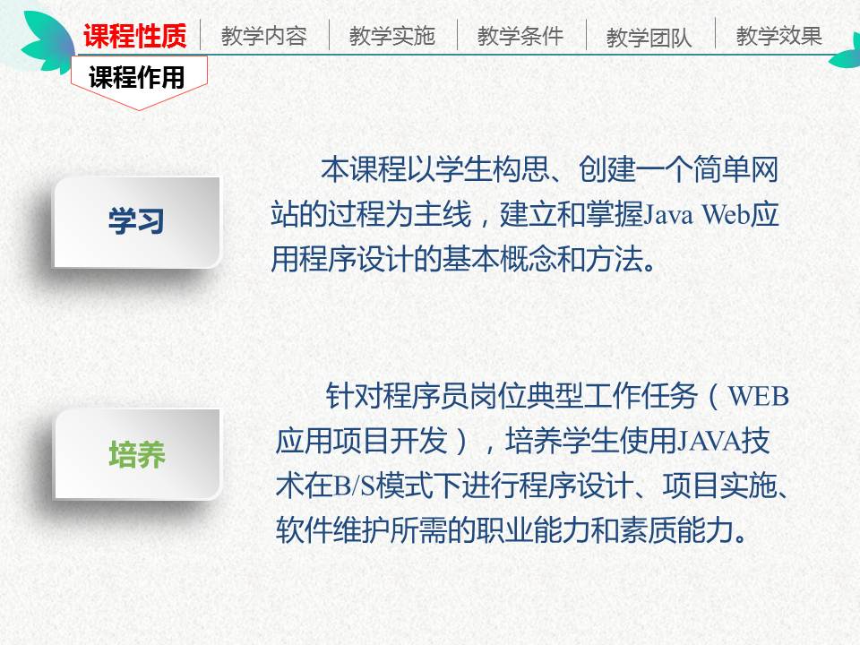教育教学 培养方案 课程建设 协同育人 教学成果 理论学习 课程简介 网站首页 > 教育教学 > 课程建设 > 课程简介 > 正文 Java Web程序设计 [作者]: [编辑]:李静(计算机系)   上一条:Linux操作系统 下一条:云计算导论