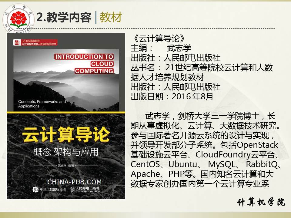 教育教学 培养方案 课程建设 协同育人 教学成果 理论学习 课程简介 网站首页 > 教育教学 > 课程建设 > 课程简介 > 正文 云计算导论 [作者]: [编辑]:王本尧   上一条:Java Web程序设计 下一条:移动软件开发