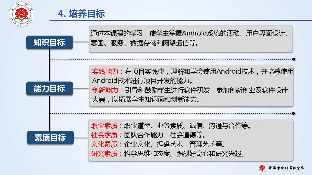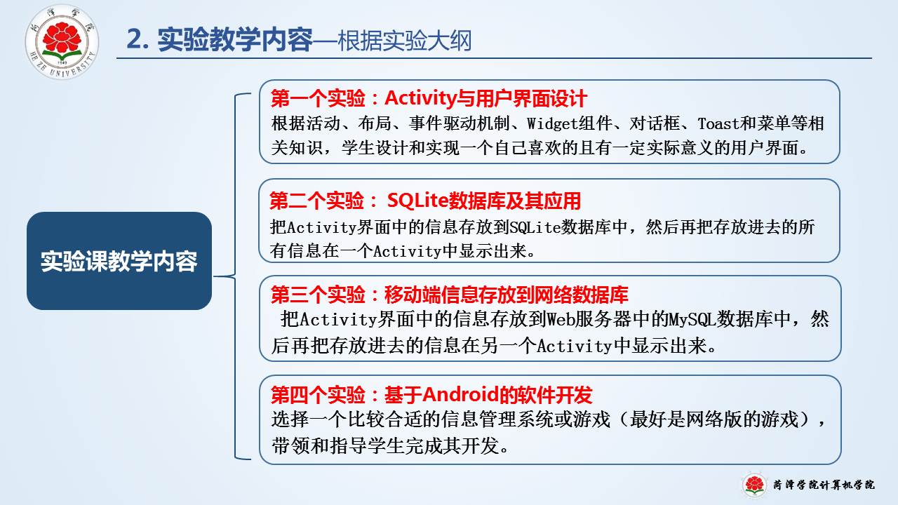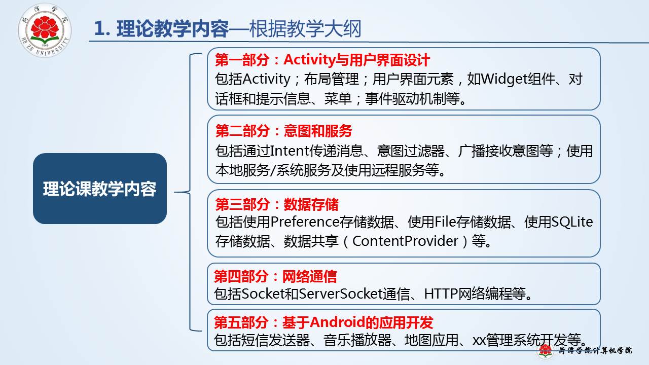 教育教学 培养方案 课程建设 协同育人 教学成果 理论学习 课程简介 网站首页 > 教育教学 > 课程建设 > 课程简介 > 正文 移动软件开发 [作者]: [编辑]:王本尧   上一条:云计算导论 下一条:线性代数