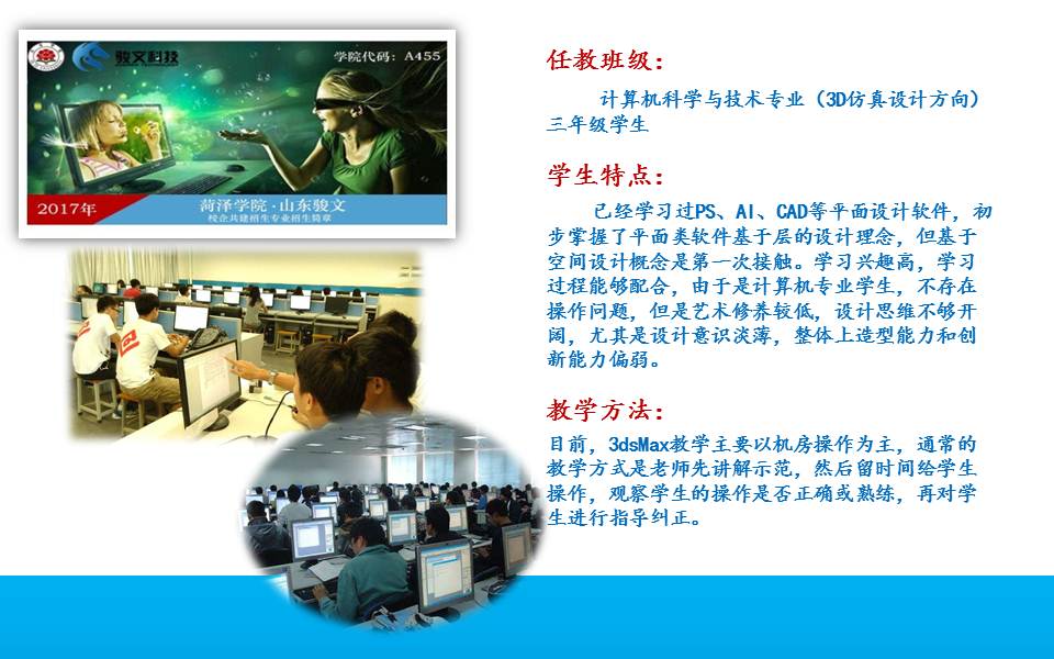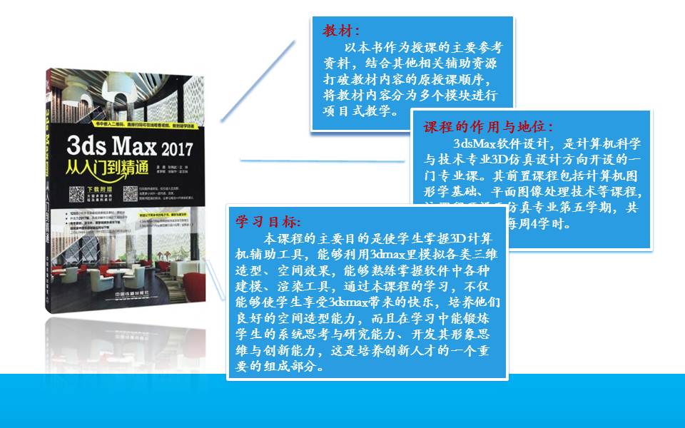 教育教学 培养方案 课程建设 协同育人 教学成果 理论学习 课程简介 网站首页 > 教育教学 > 课程建设 > 课程简介 > 正文 3Ds Max [作者]: [编辑]:李静(计算机系)   上一条:面向对象程序设计(C#) 下一条:数据库原理与应用